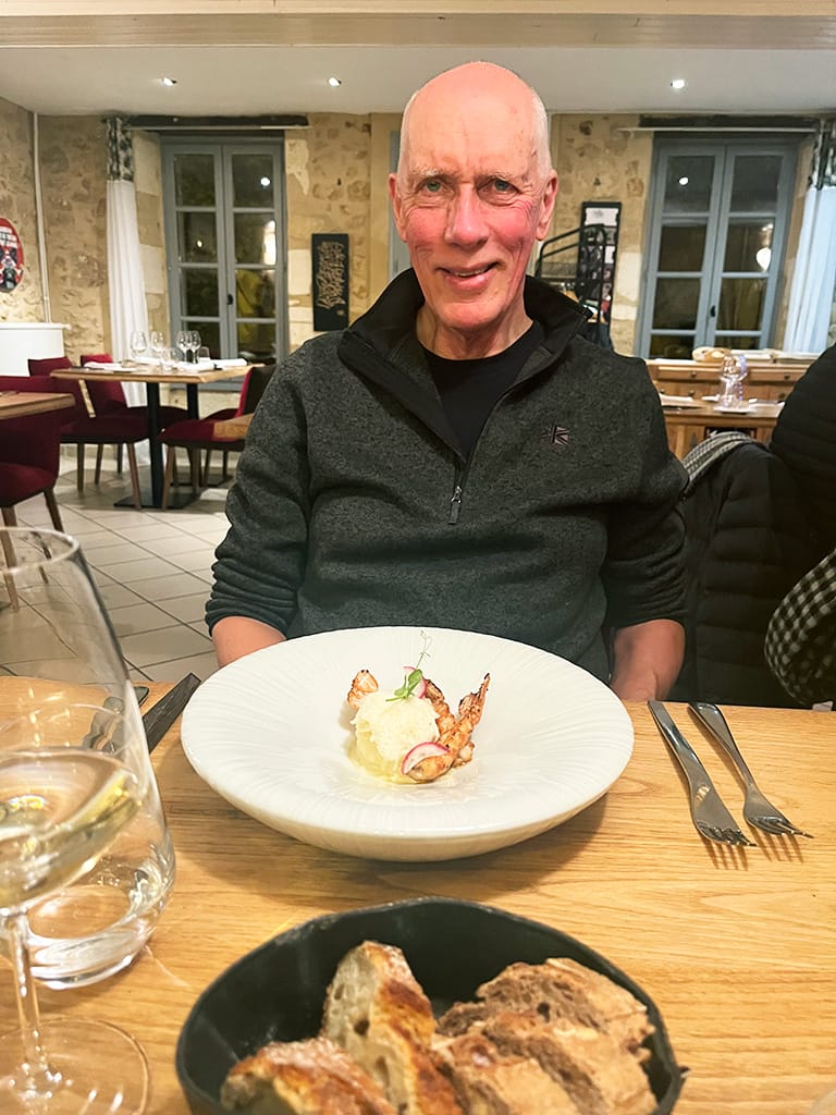 The next table was populated by a French couple with their well-behaved large French Poodle. We felt sad that we’d left Bonnie at home – but I think she would have found the whole experience very frustrating – there were definitely no left overs for the doggie bag!