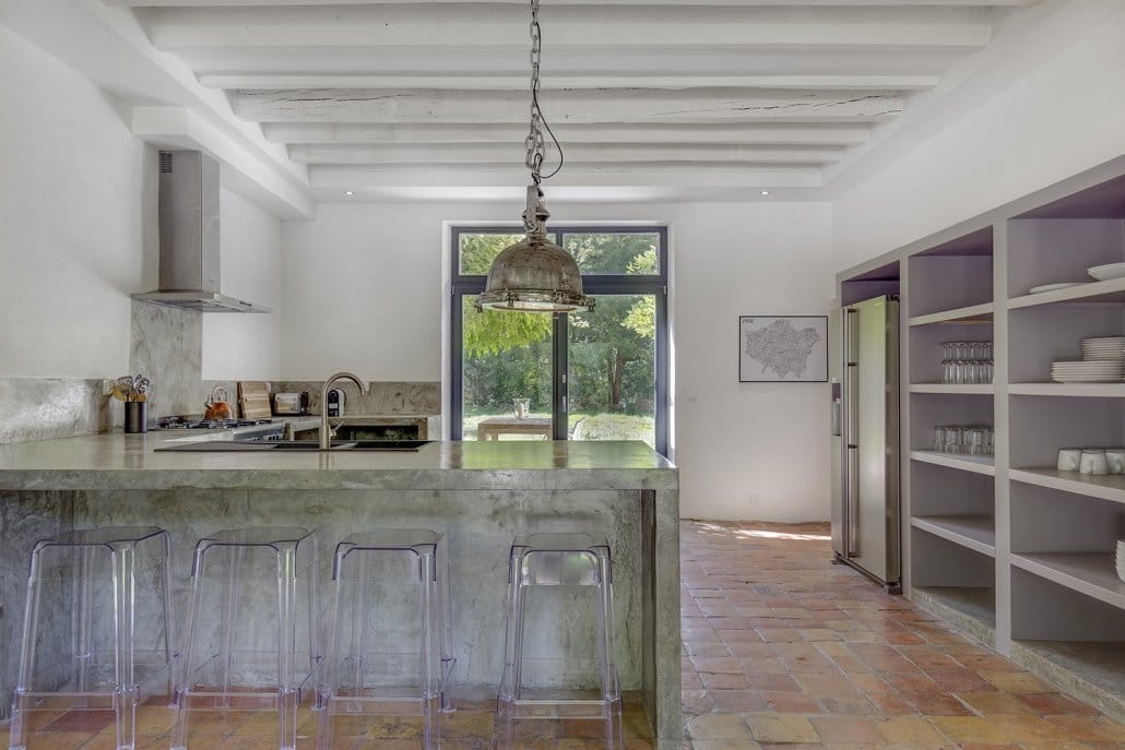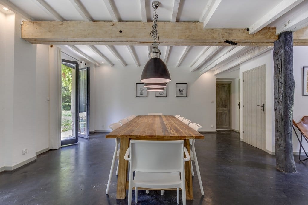 You will find a large and airy space, with original beams, wooden and concrete floors as well as the original terracotta tiles in the kitchen. No compromises have been made in the quality of the furnishings and the overall finish.