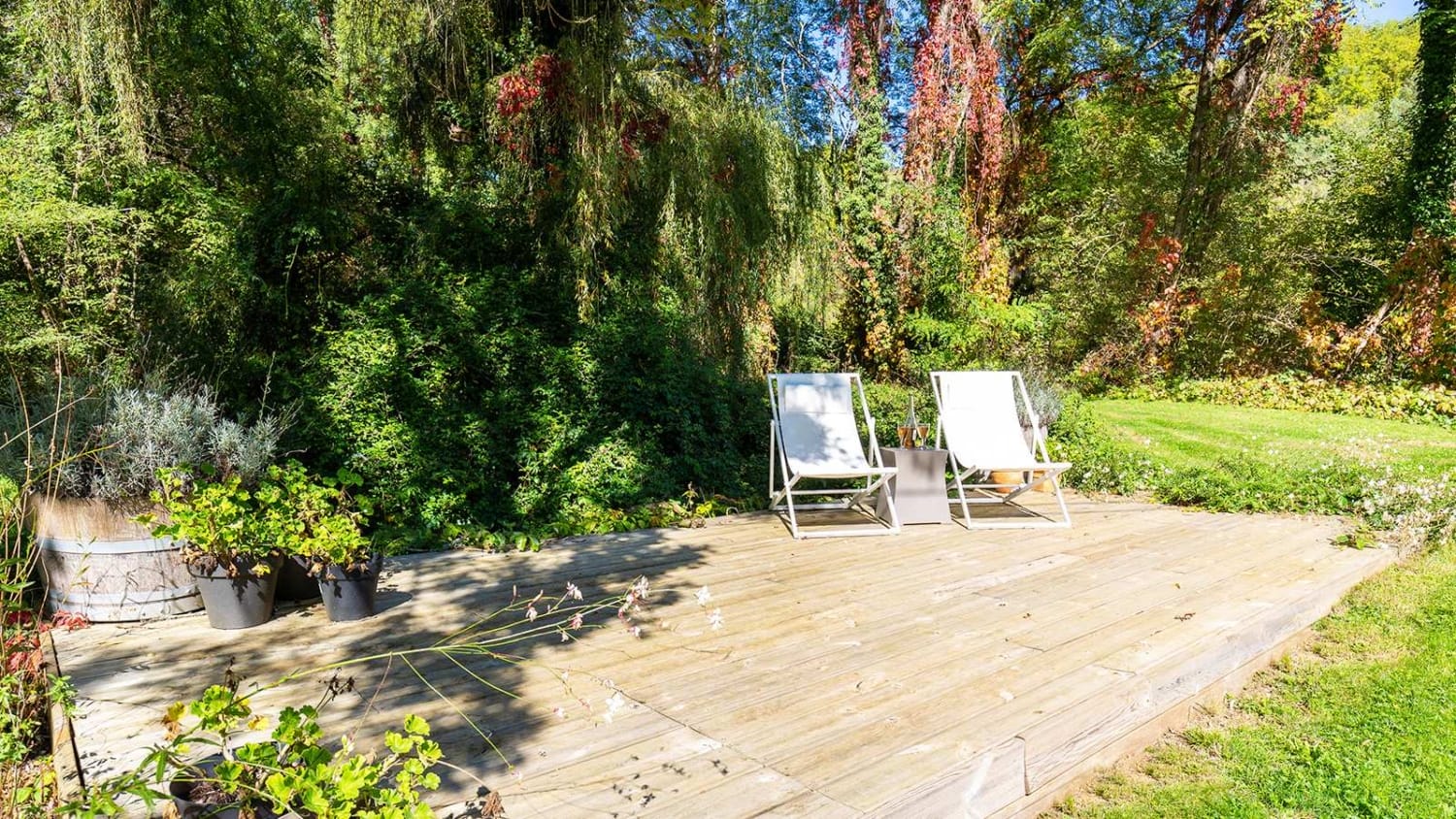 This large, bright and airy space looks out over the pool and the woodland beyond. It is simple in its design, allowing the space to be used in many ways – for yoga sessions, weight workouts, a massage, reflexology or facial, or as a games space should you want to be indoors.